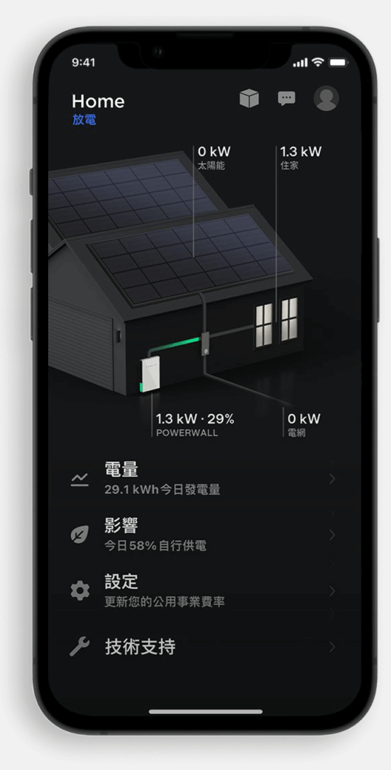 Powerwall 是一款智慧家用儲能電池,能在停電時自動提供備援電力。無需燃料、不產生噪音,並可與太陽能系統整合,透過日照持續充電,確保關鍵設備長時間穩定運作。